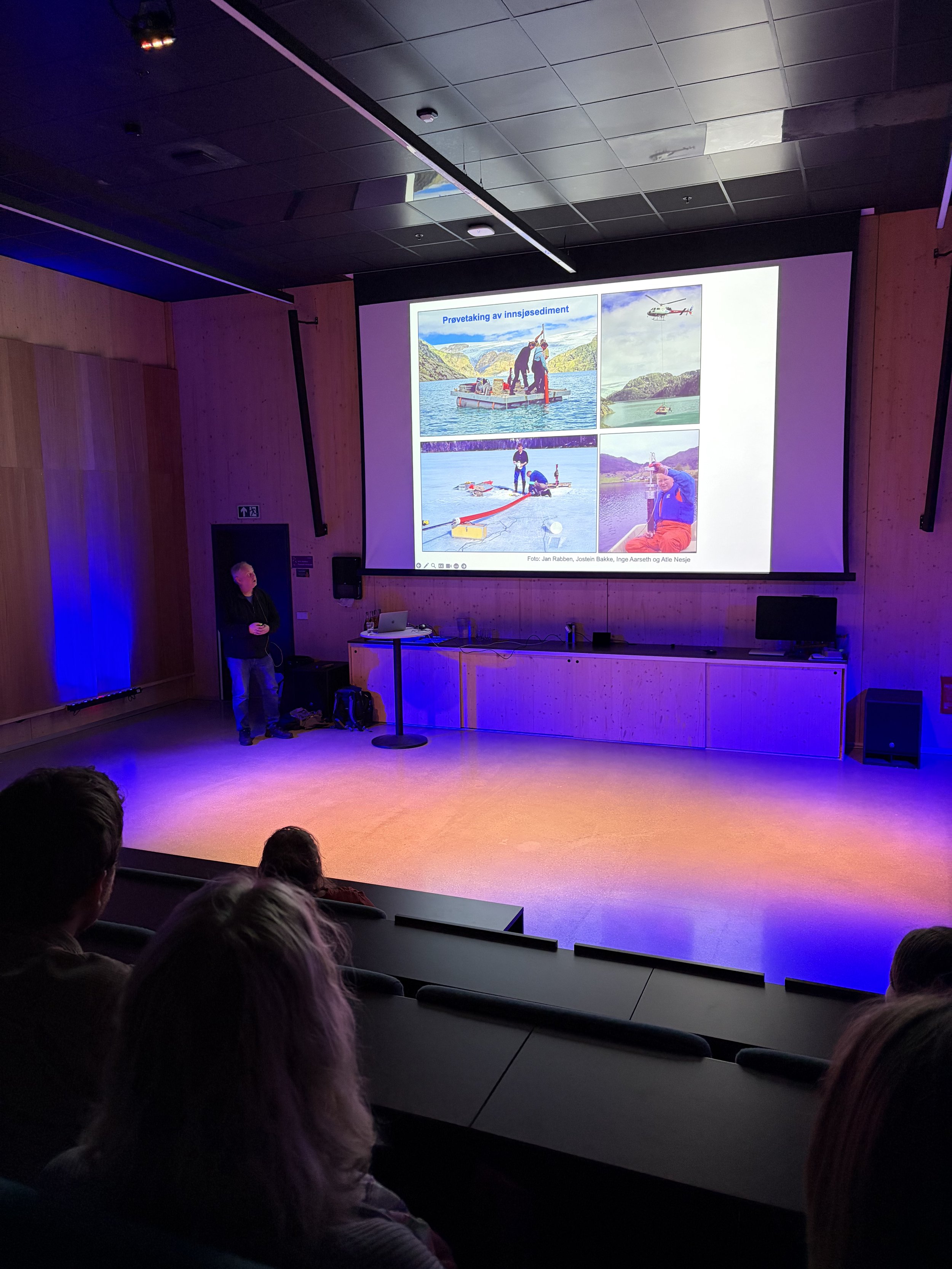 Jacob Yde, professor ved Høgskulen på Vestlandet og prosjektleiar for JOSTICE-prosjektet, fortalde om forskinga bak prosjektet og kva ho kan seie oss om utviklinga til breane framover.